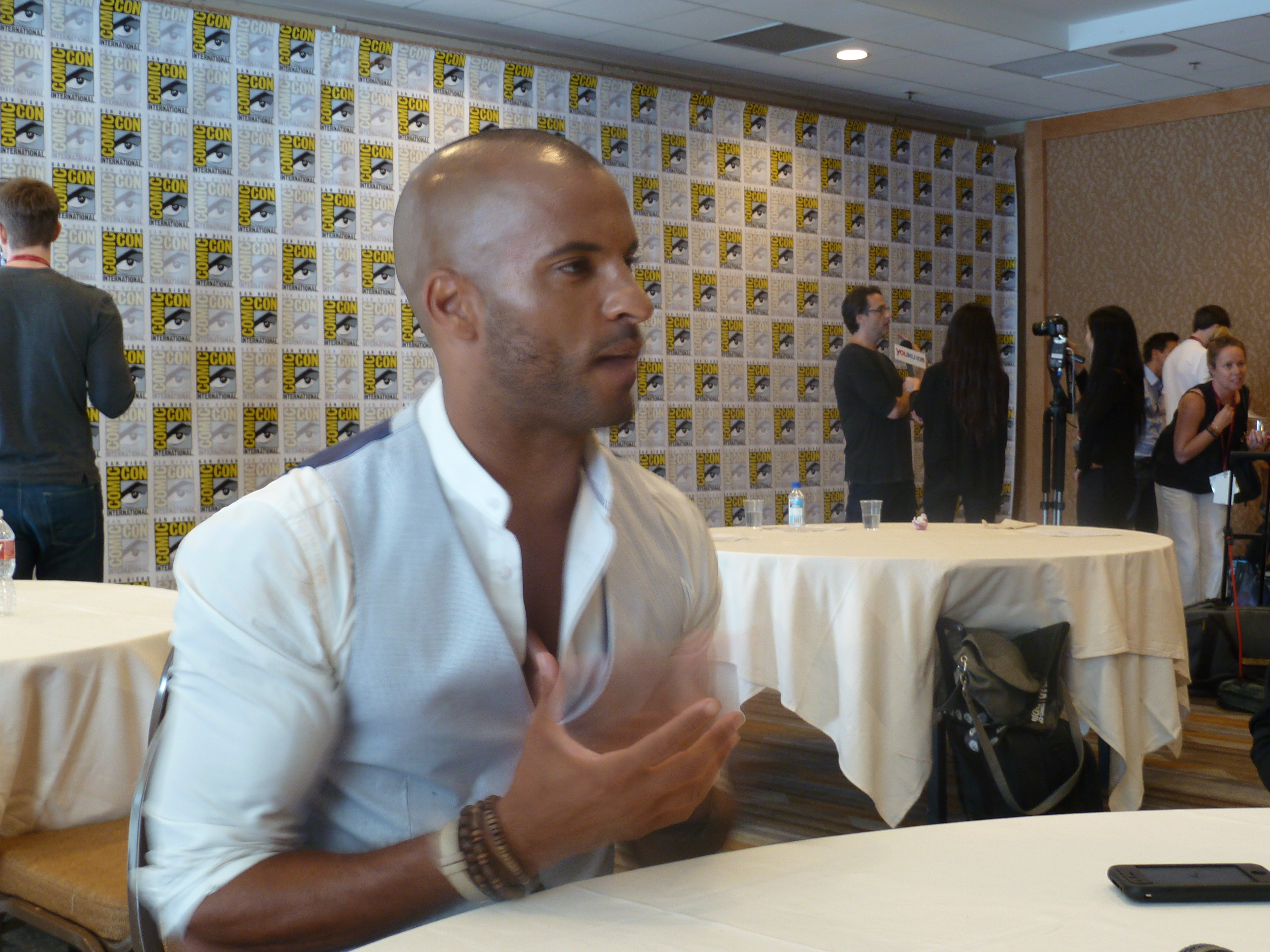 We caught up with the cast and producers from the apocalyptic hit series on The CW, The 100, while at San Diego Comic Con. On hand were cast members Eliza Taylor (Clarke), Isaiah Washington (Chancellor Jaha), Lindsey Morgan (Raven), and Marie Avgeropoulos & Ricky Whittle, who play the “against-all-odds” lovers, Lincoln and Octavia (Linctavia?).