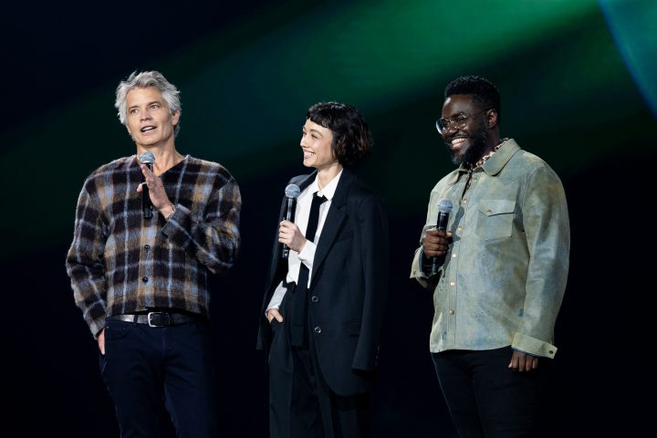 Next, an unexpected, spine-tingling Alien: Earth invasion brought disruption, chaos and an appearance by the infamous Xenomorph as it scrambled above and behind the stage. Shortly after, Sydney Chandler, Timothy Olyphant, and Babou Ceesay shared an early look at the highly anticipated series that is premiering on August 12th. The first two episodes will be available to stream on Hulu and the FX linear channel, and on Disney+ internationally.