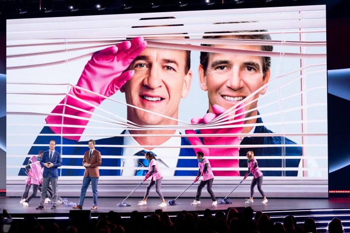 Peyton and Eli Manning proved their skills go far beyond the football field as they broke into a live musical performance featuring stars from TV’s biggest hits including High Potential (Kaitlin Olson), Paradise (Sterling K. Brown), Get Up (Mike Greenberg) and Abbott Elementary (Sheryl Lee Ralph). Together, the group assisted the NFL greats in a formal pitch to executives for more projects across Disney brands, featuring none other than the Manning brothers.