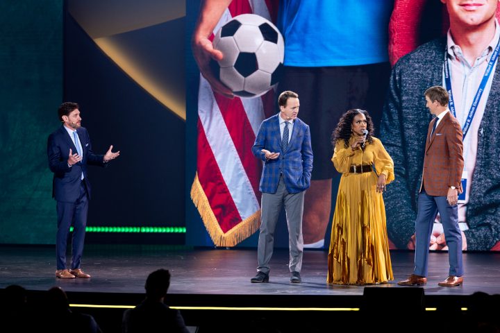 Brought out by Goofy and the Brooklyn United Drumline, ESPN and SEC Network host and reporter, Laura Rutledge, and University of Texas Longhorns Head Football Coach, Steve Sarkisian celebrated the innovative streaming technology that helped deliver over 140 billion minutes of live game consumption during last year’s college football season.
